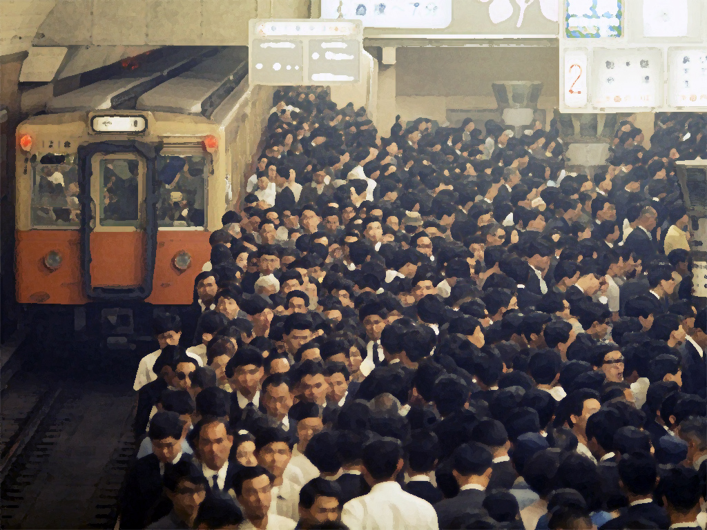 これまでになかったニュータウンが各地に建設され、そこから大量の人々が通勤に電車を使うようになると、通勤ラッシュが加速化しました。1963年には常磐線で乗客の揺り返しによってガラスが割れたと報じられていますし、1965年の読売新聞によると都内の電車の乗車率は300%を超えていて、毎日のように失神する乗客がいたと書かれています。冷房車が登場するのは1970年ですから、乗客は冷房もない車内に乗車率300%の寿司詰めにされて1時間以上も我慢していたのです。