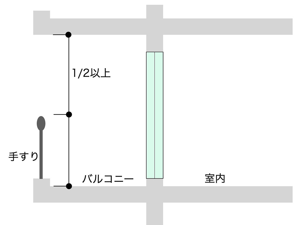 建築基準法施行令第126条(屋上広場等)第一項「屋上広場又は二階以上の階にあるバルコニーその他これに類するものの周囲には、安全上必要な高さが1.1m以上の手すり壁、さくまたは金網を設けなければならない」