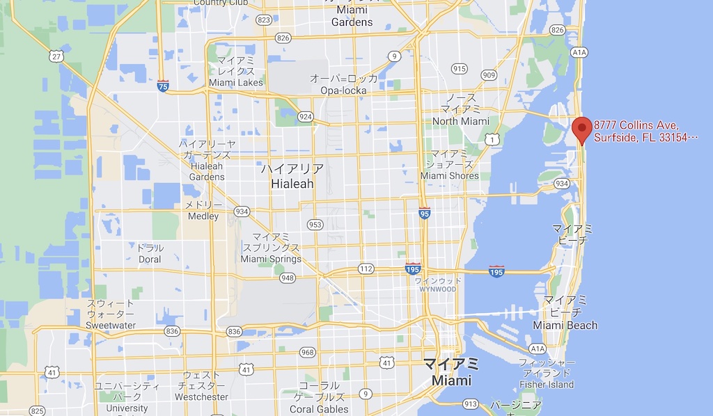 住所は以下の地図の通りです。観光名所としても有名な、マイアミビーチにあることがわかります。