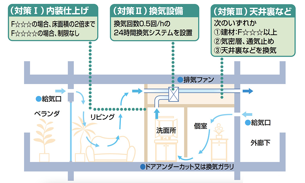 建築基準法が改正され、2003年7月以降のマンションには24時間換気が設置されています。シックハウス症候群の対策として導入された24時間換気ですが、2時間に1回のペースで部屋内の空気を入れ替えるので、部屋内に溜まった湿気を外に出す効果もあります。中には寒いからという理由で24時間換気を止めてしまう人もいますが、特に新築から数年間は止めてしまうと室内に湿気を溜め込んでしまう原因になりかねません。もし寒い場合は、一時的に給気口を閉めるなどして24時間換気のシステム全体を止めないようにしましょう。