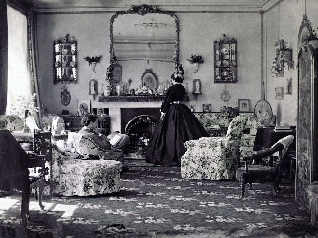 ドローイングルームは、大抵の場合は食事室に隣接されていて、奥まった場所にありました。ここで気兼ねなくくつろいでいたのですが、その快適さから男性も混じるようになって現在のリビングルームに繋がったというわけです。食事室に隣接した談話室というのは、現在のリビング・ダイニングに通じる間取りだと思います。