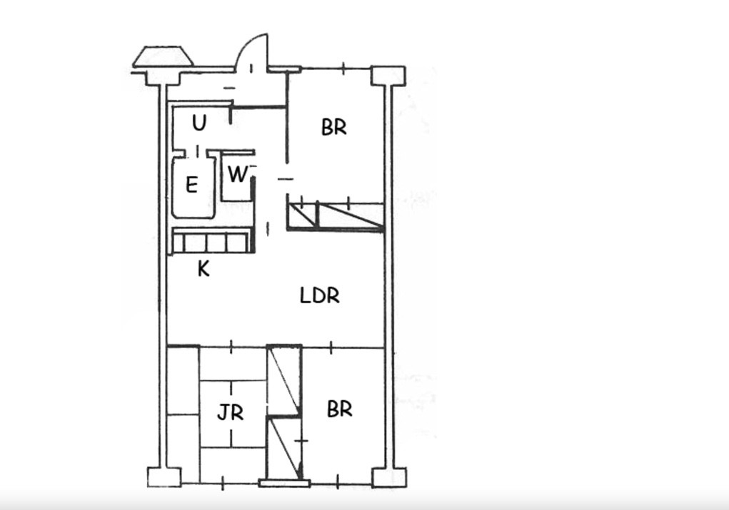 この間取りが面白いのは、リビングが窓際ではなく中部屋になっていることです。これは公団の51C型間取りを元にリビングルームを作ったからだと言われています。その後80年代に入るとリビングルームが窓際に移動し、リビングルームは一般的になります。日本でのリビングルームの歴史は、まだまだ浅いと言えるでしょう。