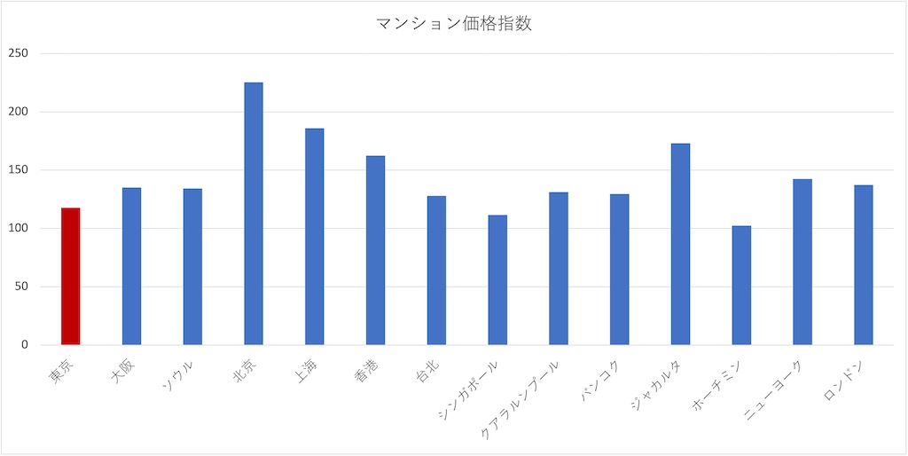 日本のマンションは海外の主要都市の集合住宅に比べると、お買い得と言われています。日本に住んでいると東京23区の新築マンションの平均価格が1億円を越えたなどのニュースを耳にするので、日本のマンションの高騰化が気になりますが、海外の住宅事情と比較すると割安なのだそうです。日本不動産研究所が、各国の不動産を比較するために国際不動産価格賃料指数というのを出しています。これを見ると日本のマンションの割安さが見えてきます。