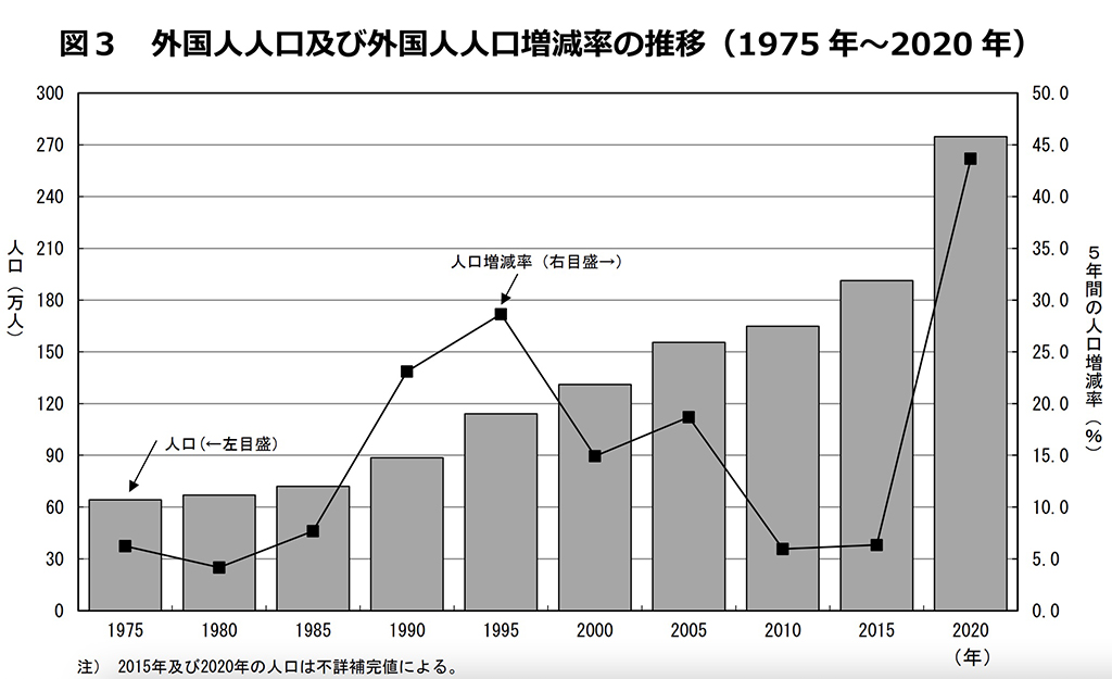 増える外国人と減る日本人