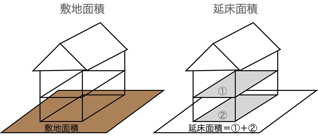 容積率が100%で敷地面積が200㎡の場合、延床面積は200㎡になります。容積率が400%で敷地面積が200㎡の場合、延床面積は800㎡になります。厳密には延床面積にはバルコニーや屋外階段など含まれないものもあるのですが、とりあえず床の面積だと思っていただいて結構です。