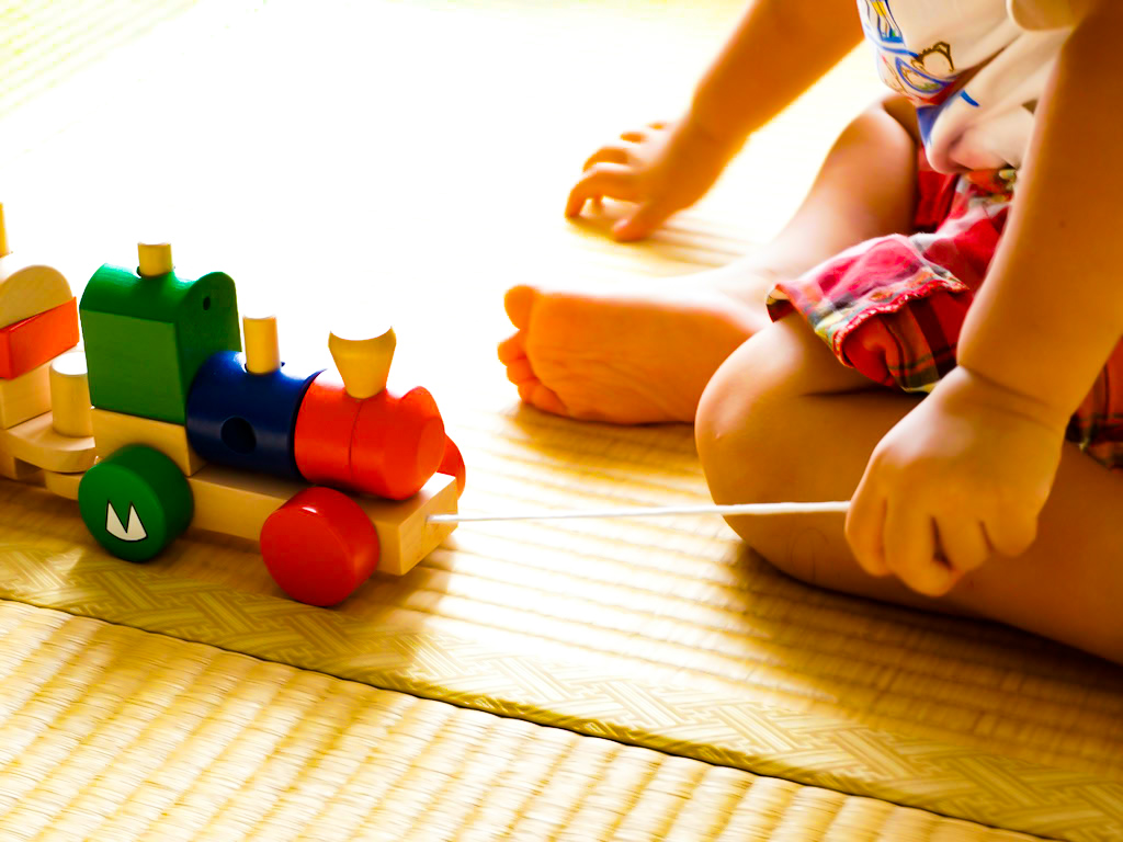 日本の住宅は床に座る文化を残したまま椅子を持ち込み、床に座るのに最も不適なフローリングを使っているのです。ソファがあるにも関わらず床に座り、時には床に寝転ぶという畳暮らしの様式を色濃く残しています。畳ほどクッション性がないフローリングで子供を育てるためフローリングの上にクッションシートを敷いたり、寝転ぶためにフローリングの上にカーペットを敷くなどの工夫をしています。床に座ったり寝転んだりできる和室を排して全てをフローリングにしたため、硬いフローリングの上に柔らかいものを敷く必要が出てきたのです。子育てで語られる転倒時のクッションシートも同様で、畳敷では問題にならなかったことがフローリングによって問題視されるようになりました。