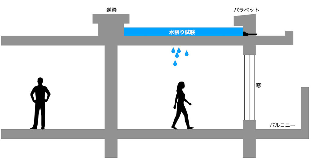 3回目の漏水が発生したのは、大雨の日だったそうです。気象情報から当時の天候を調べると、風は強くないのですが雨量が多い日でした。しかしこの時、漏水原因を調べるために外壁への放水試験を行っています。台風のように横殴りの雨で漏水が起こったのなら外壁からの漏水を疑うのもわかります。しかし風が弱く大雨が降った後の漏水で、マンションの外壁から雨水の侵入を疑うのはよくわかりません。そして外壁への放水試験の結果、漏水は発生しなかったようです。これは当然と言えるでしょう。